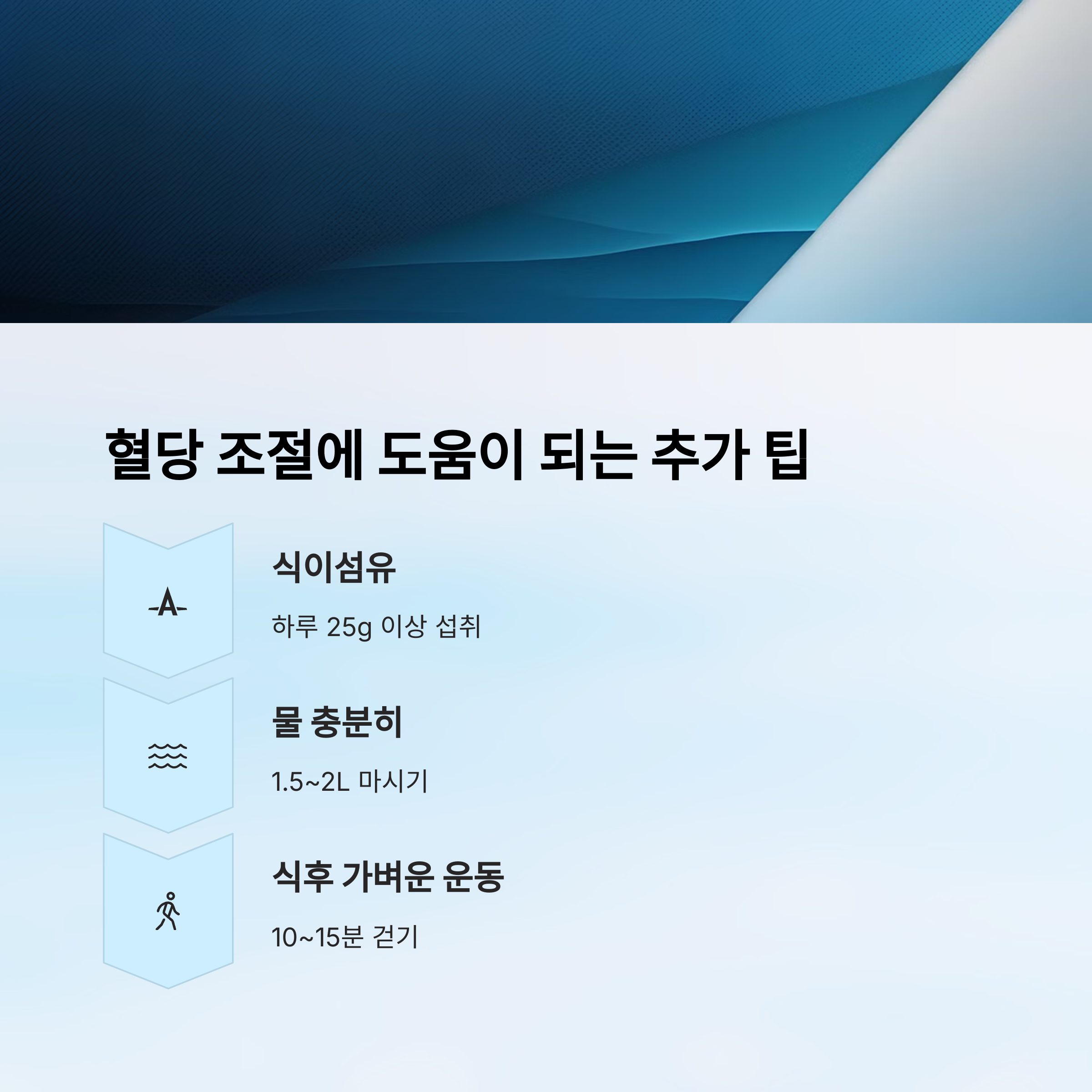 혈당 다이어트를 효과적으로 실천하기 위해서는 식단뿐만 아니라 생활 습관도 중요해요. 몇 가지 추가적인 팁을 참고하면 혈당 관리에 더욱 도움이 될 거예요.