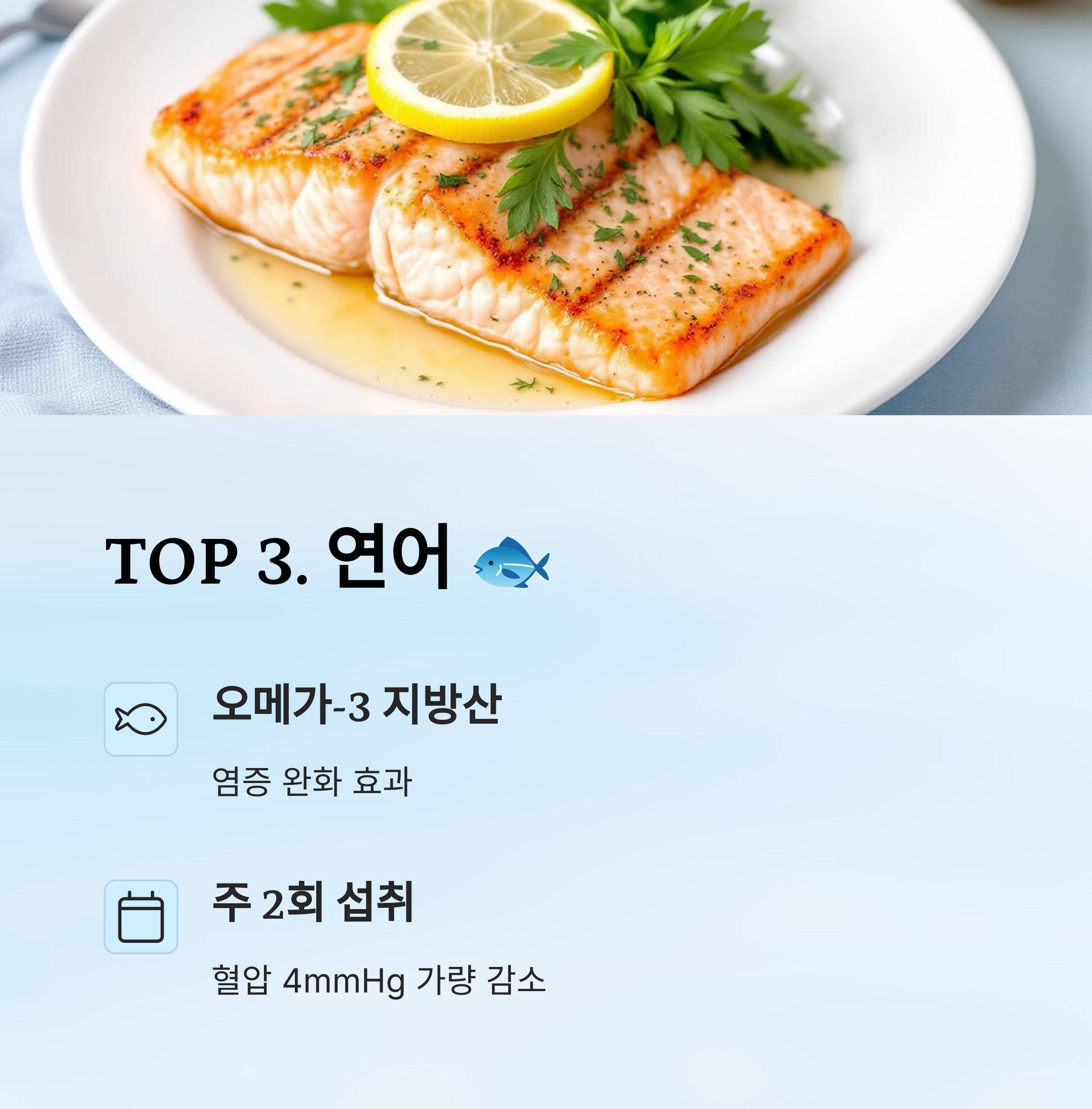 연어는 맛과 건강을 동시에 챙길 수 있는 최고의 식품이에요. 일주일에 두 번 연어를 식탁에 올리는 것만으로도 혈압과 심혈관 건강을 크게 개선할 수 있어요! 🍽️