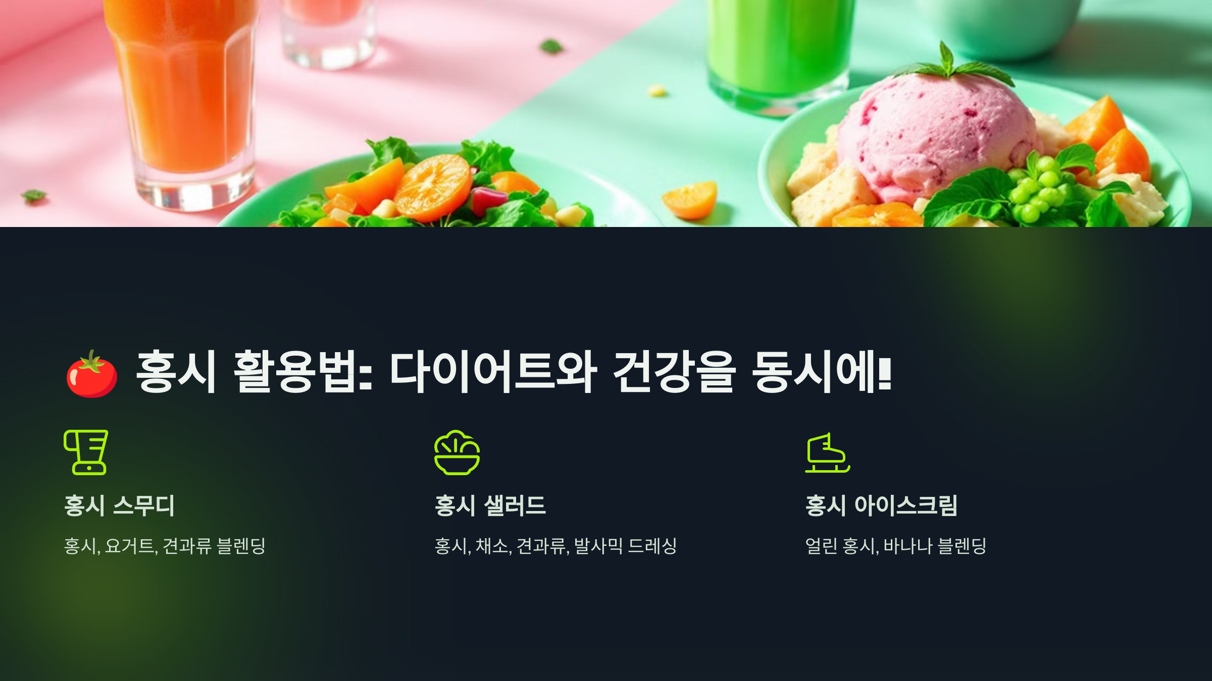 - 방법: 홍시를 슬라이스해 채소와 섞고 드레싱을 뿌려주세요.