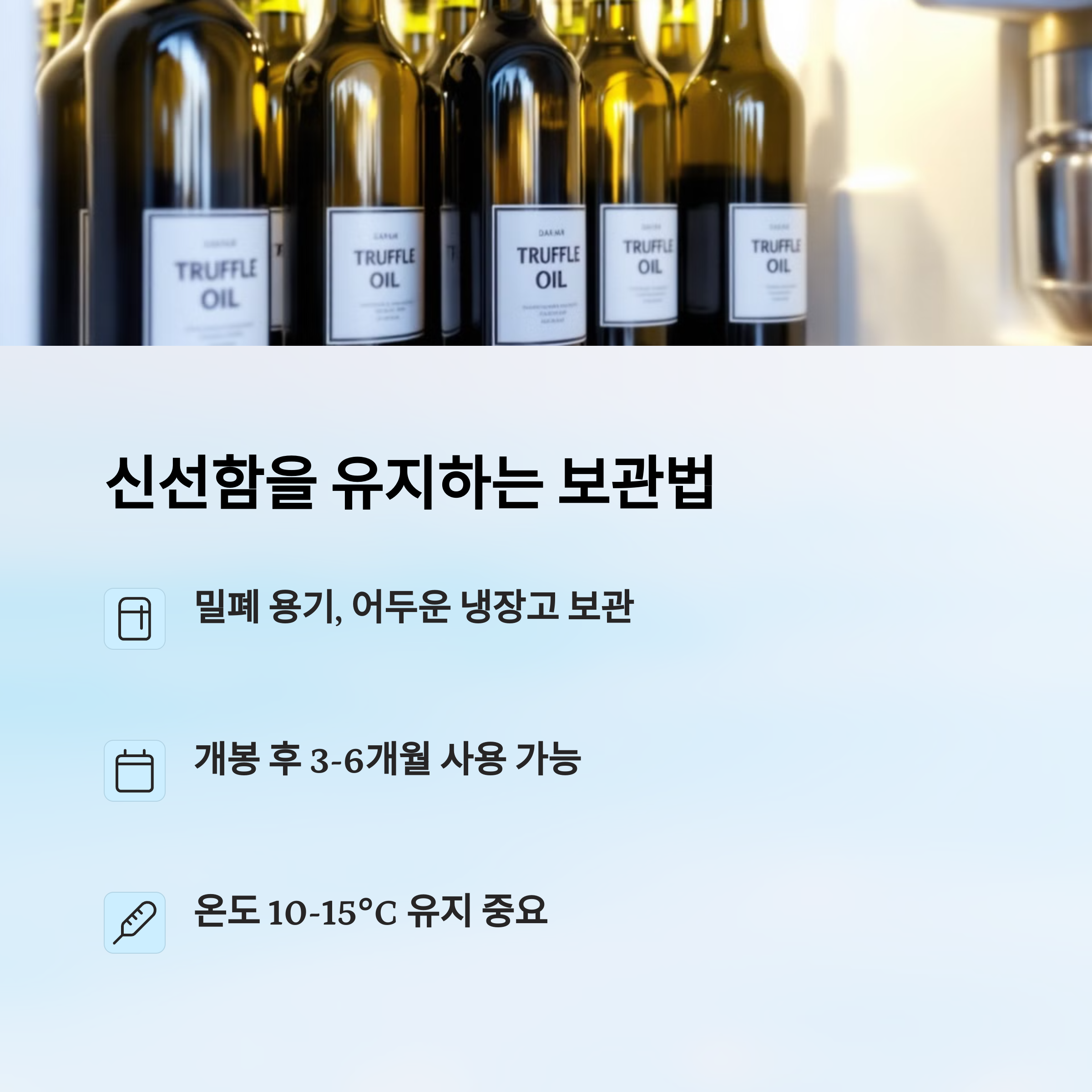 다음은 트러플 오일을 오래 맛있게 보관하는 방법 알려드릴게요. 오래 향을 유지하는 꿀팁도 같이 드려요 💡