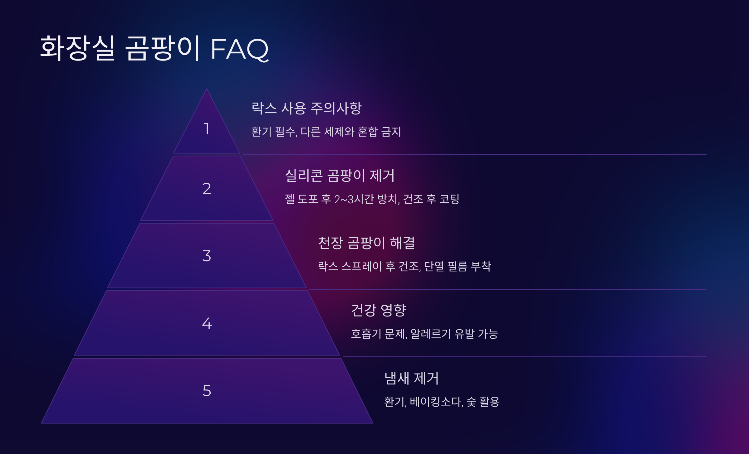 ✔ **젤 타입 제거제를 사용하면 흘러내림 방지** ✔ **환기를 꼭 하면서 작업 (화학 성분 흡입 주의!)** ✔ **재발 방지를 위해 실리콘 방수 처리 or 코팅제 도포**
