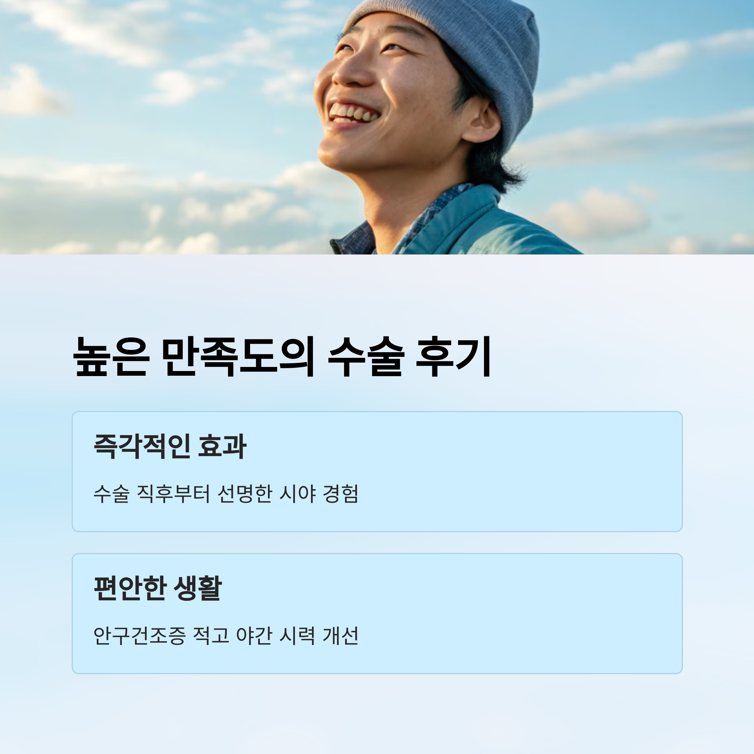| ✅ 긍정적인 후기 | "수술 후 1.5까지 시력 회복! 라식보다 부담이 적었어요." |