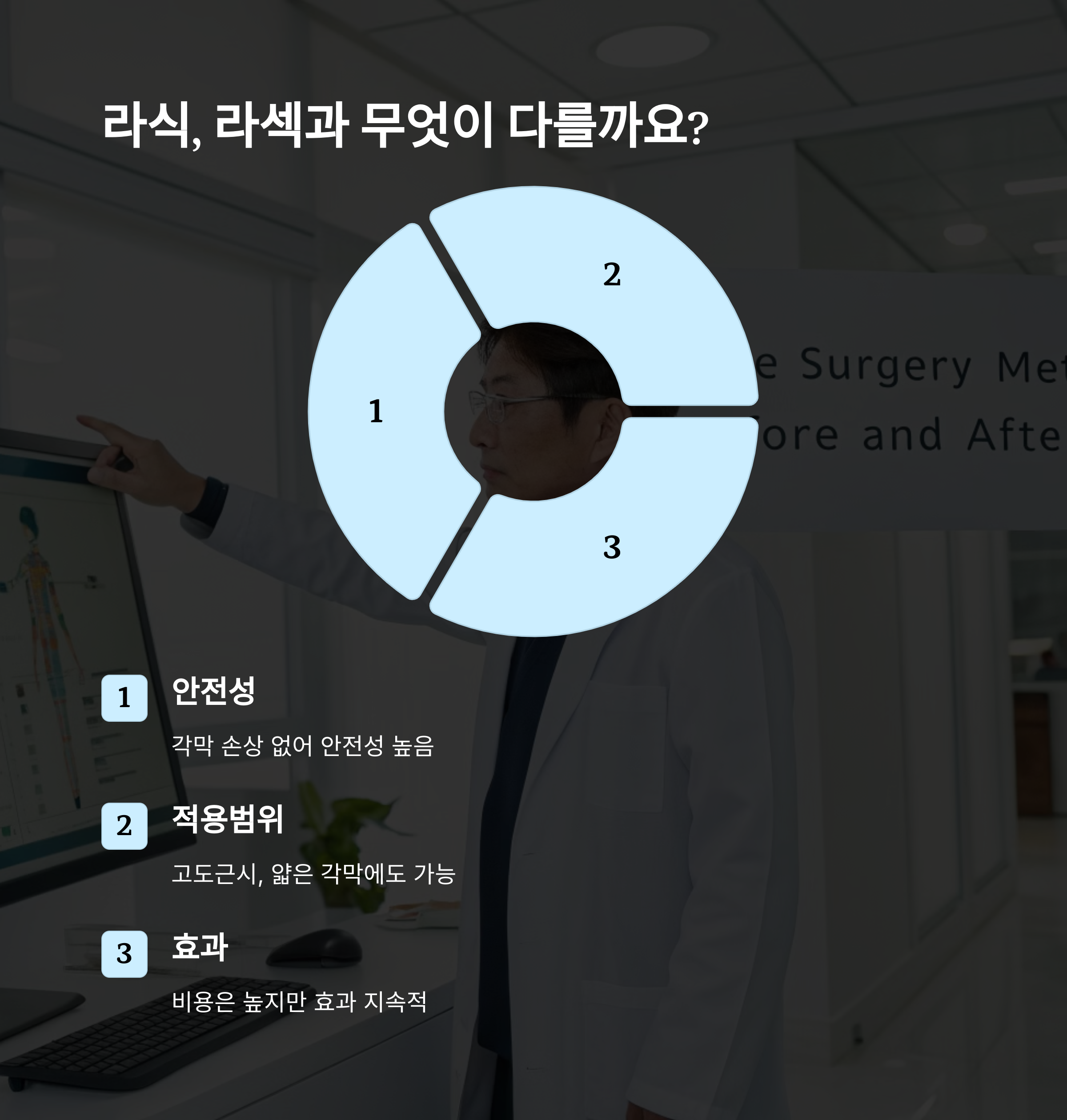 렌즈 삽입술(ICL)은 라식이나 라섹과 어떻게 다를까요? 🤔 각막을 절삭하는 방식이 아니라는 점에서 차이가 있지만, 비용이나 회복 속도에서도 차이가 있어요.
