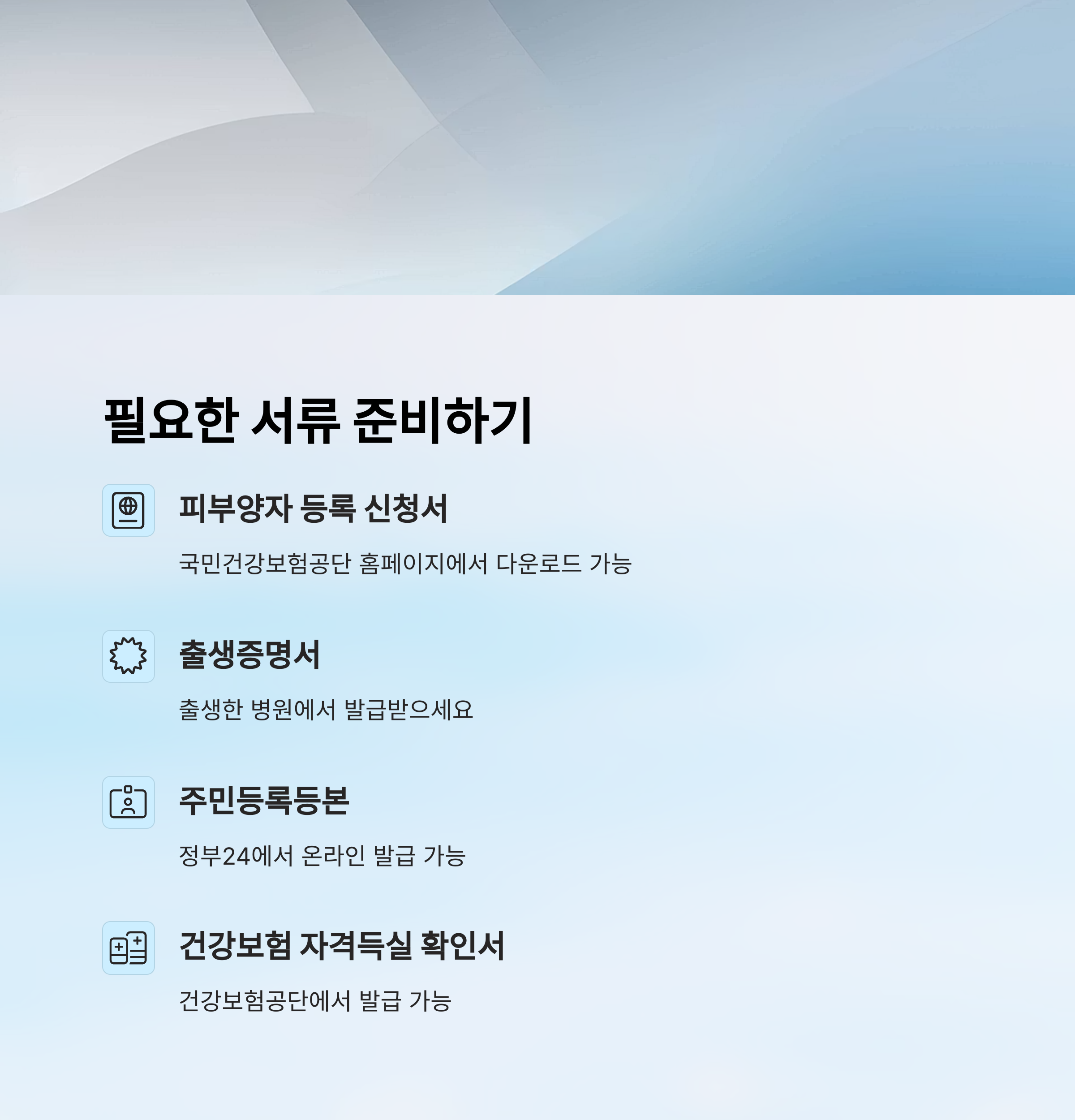 건강보험 피부양자 등록을 위해서는 몇 가지 서류를 준비해야 해요. 신생아의 출생 신고가 완료된 후, 아래 서류들을 갖춰 신청하면 돼요.