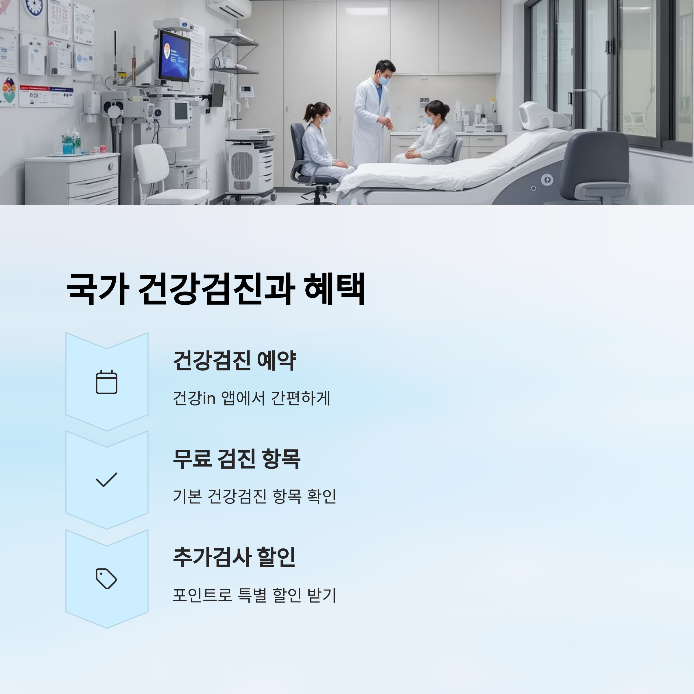국가 건강검진도 건강포인트와 연계되는 대표적인 혜택이에요. 매년 정해진 주기에 따라 무료 건강검진을 받을 수 있는데, 검진을 성실히 받으면 포인트도 받을 수 있다는 사실, 알고 계셨나요?