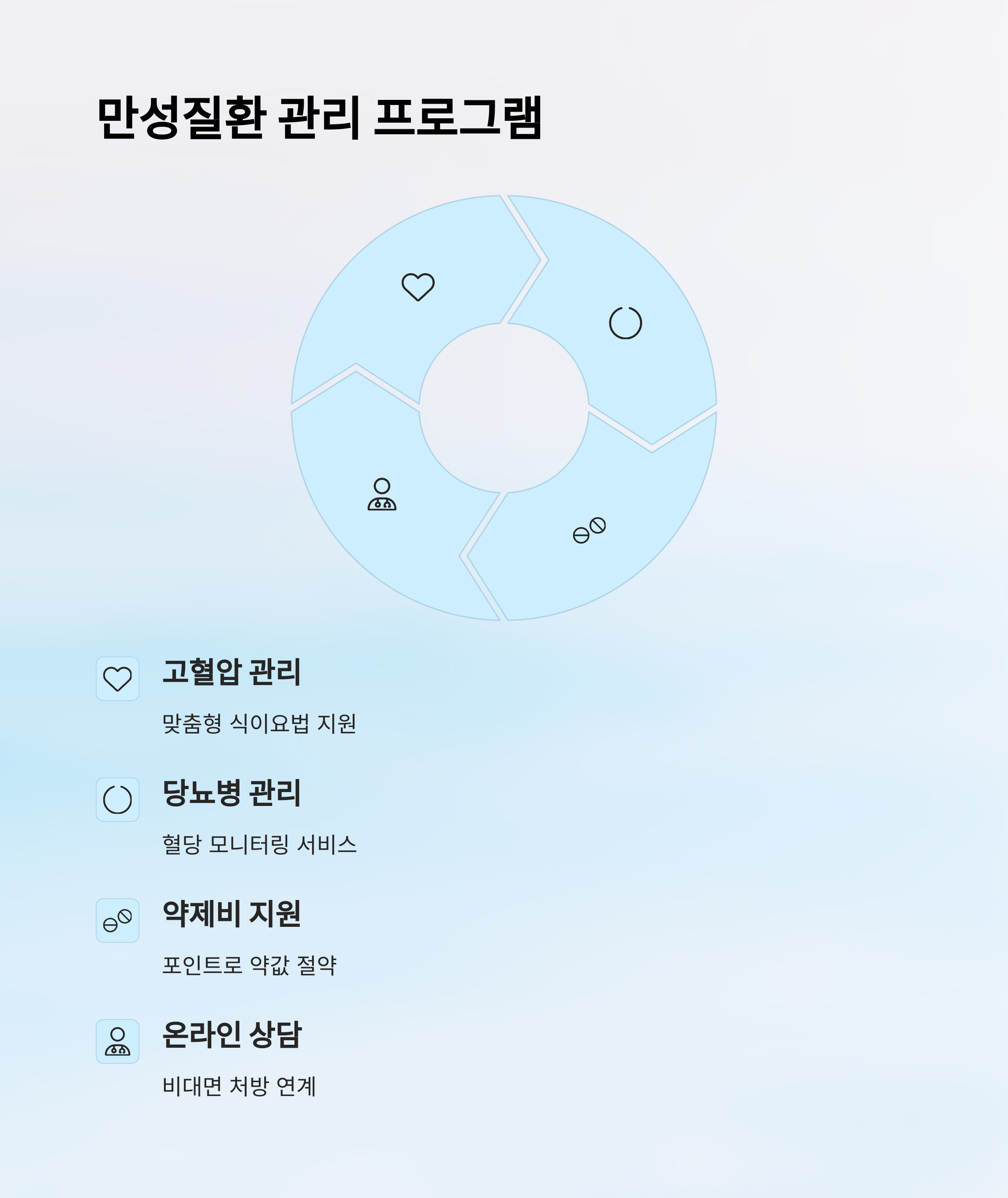 건강포인트와 가장 잘 맞는 제도 중 하나가 바로 만성질환 관리 프로그램이에요. 고혈압, 당뇨병 같은 질환을 앓고 있는 사람이라면 정기적으로 병원에 다니며 관리할 필요가 있죠. 이때 포인트와 제도를 연계하면 혜택을 크게 받을 수 있어요!