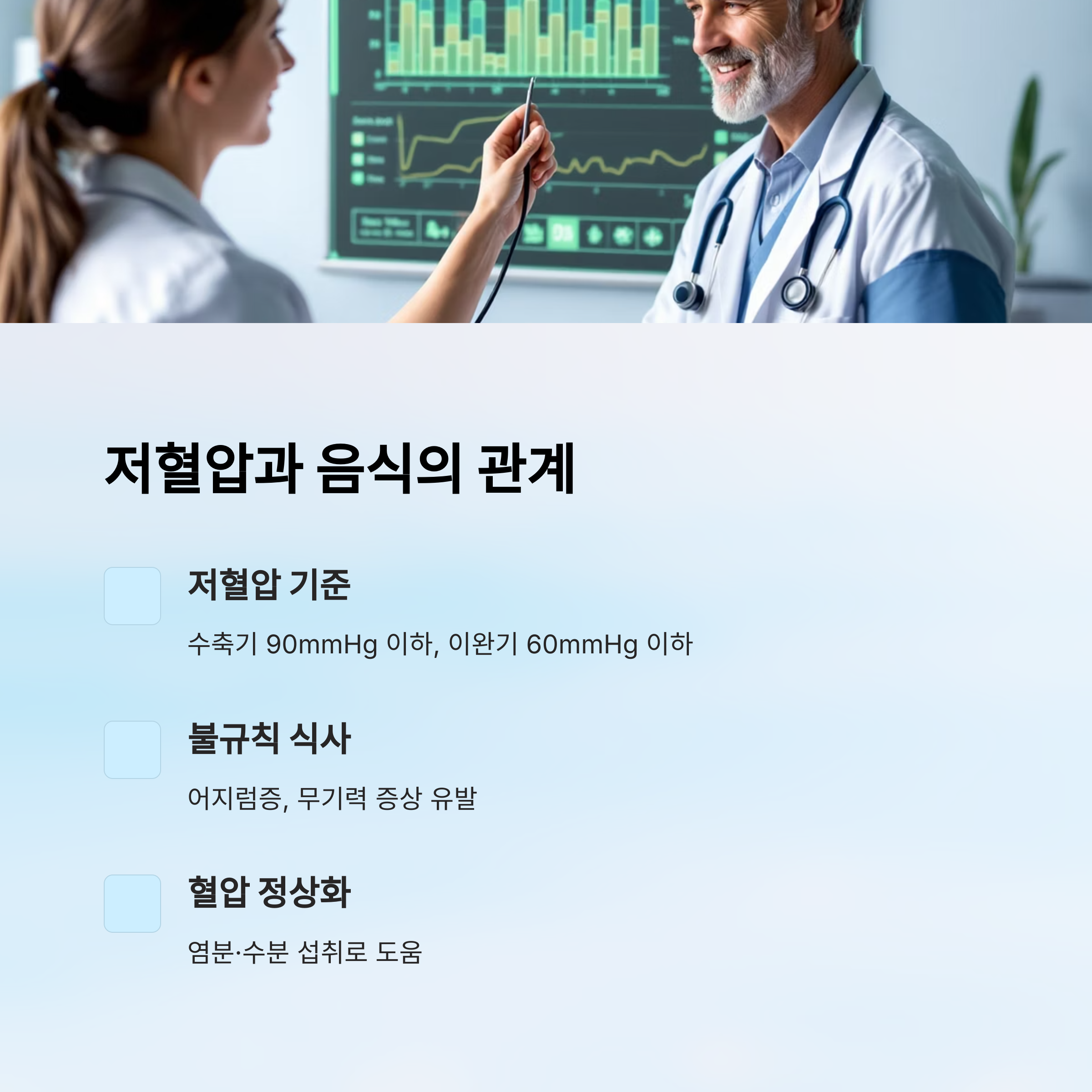 저혈압은 피로, 어지러움, 무기력함을 유발할 수 있어요. 하지만 올바른 식습관을 유지하면 혈압을 안정적으로 유지할 수 있답니다!