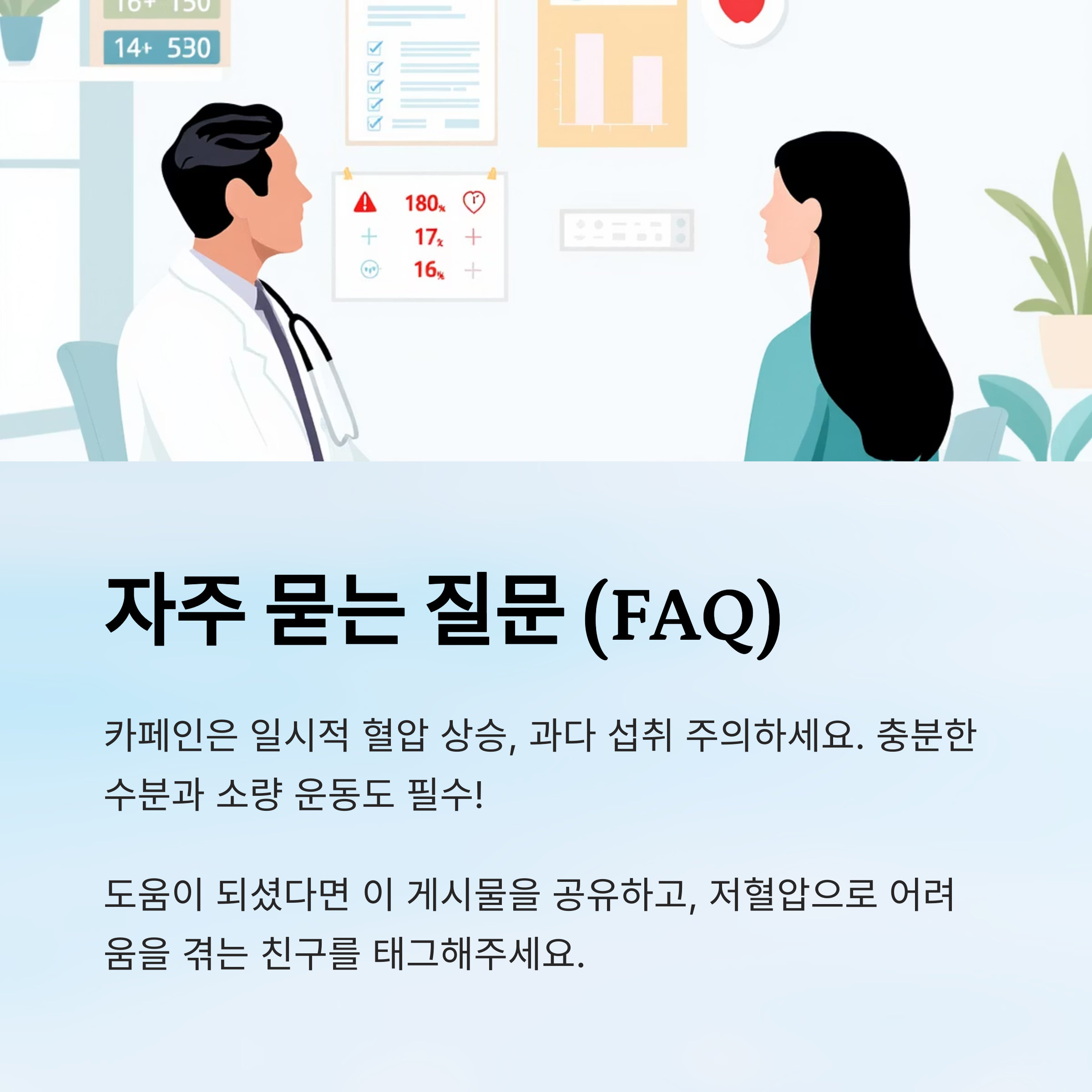 - ✔ 수분 – 탈수가 되면 혈압이 더 낮아질 수 있으므로 충분한 수분 섭취가 중요해요.