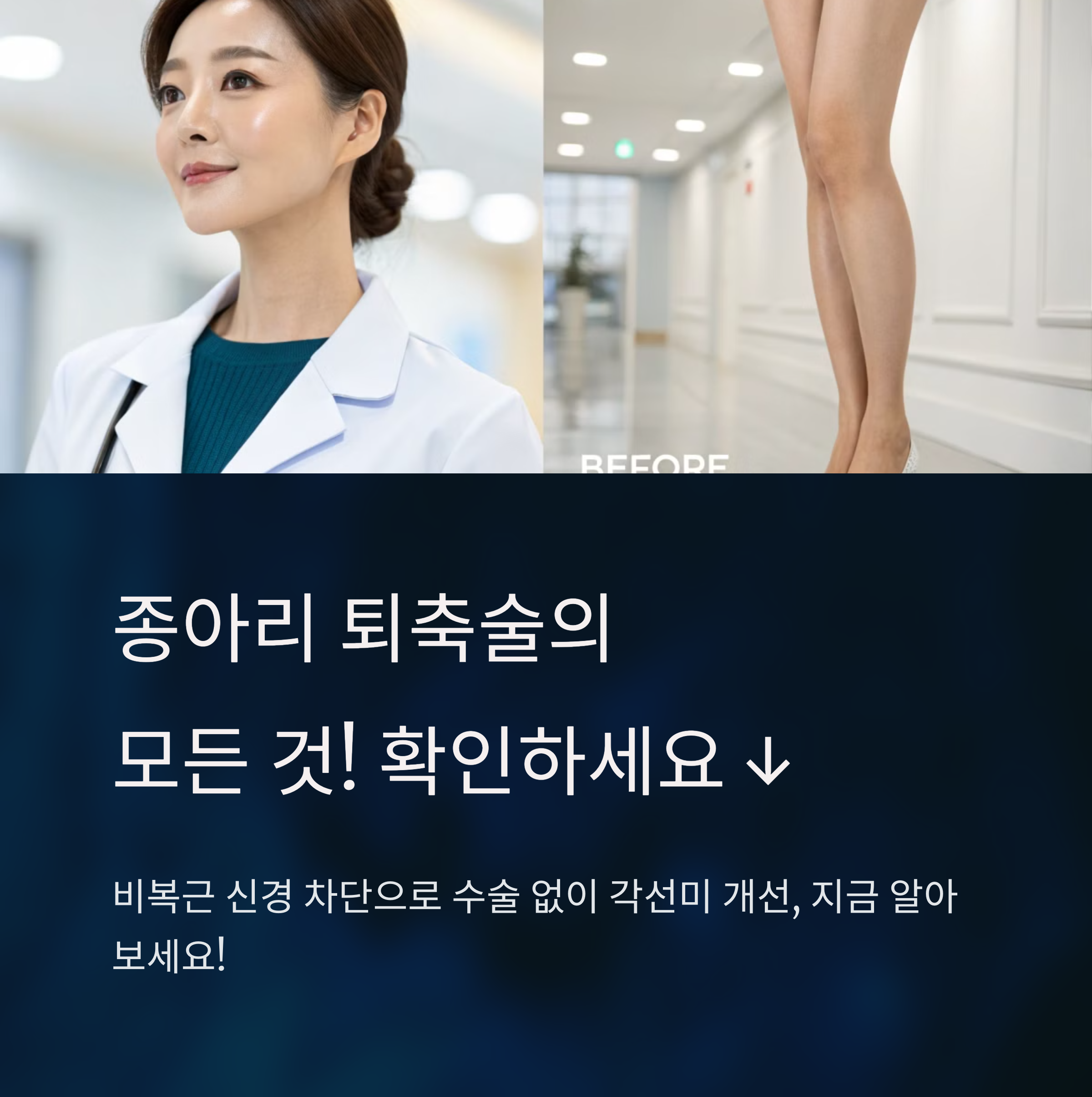 종아리 퇴축술에 대한 모든 정보를 정리해봤어요! 🦵 시술을 고려하고 있다면, 충분한 상담과 신중한 선택이 필요해요. 효과와 부작용, 회복 기간까지 꼼꼼히 따져보고 결정하세요. 😊