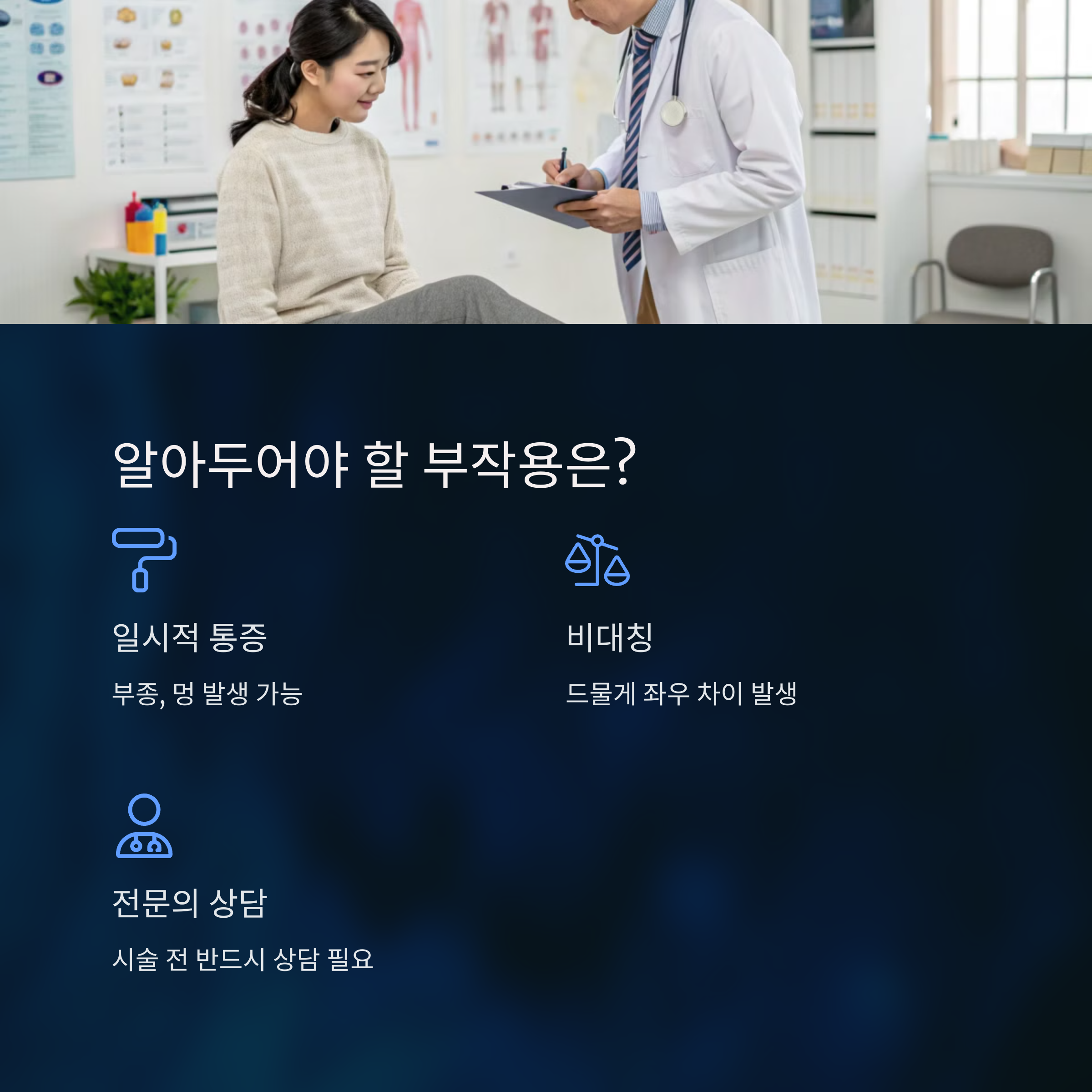 이러한 부작용을 최소화하려면 경험이 많은 병원에서 상담을 받고, 수술 후 관리를 철저히 하는 것이 중요해요.