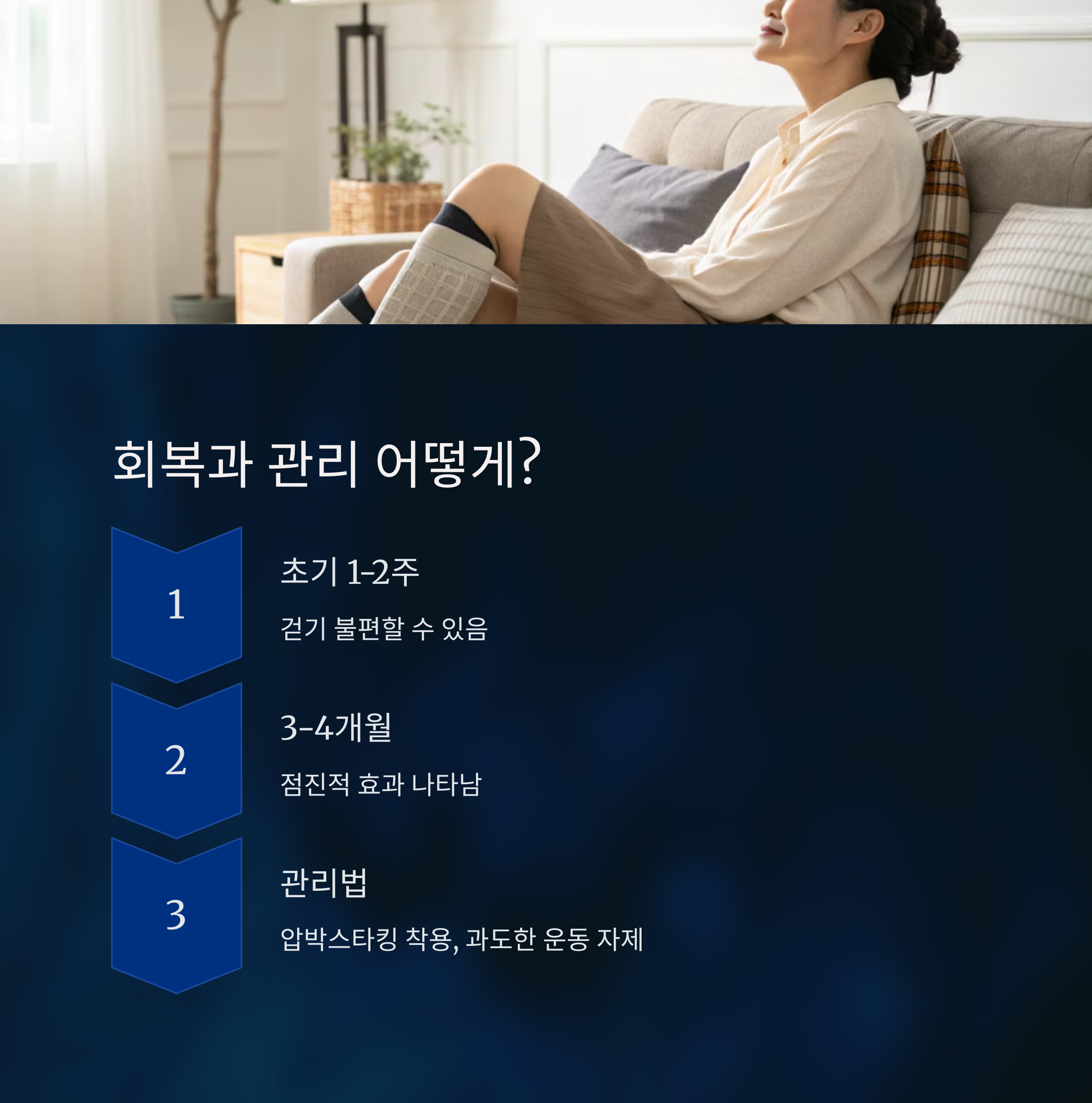 | 4. 시술 후 회복 | 붓기 및 통증 관리, 압박 스타킹 착용 |