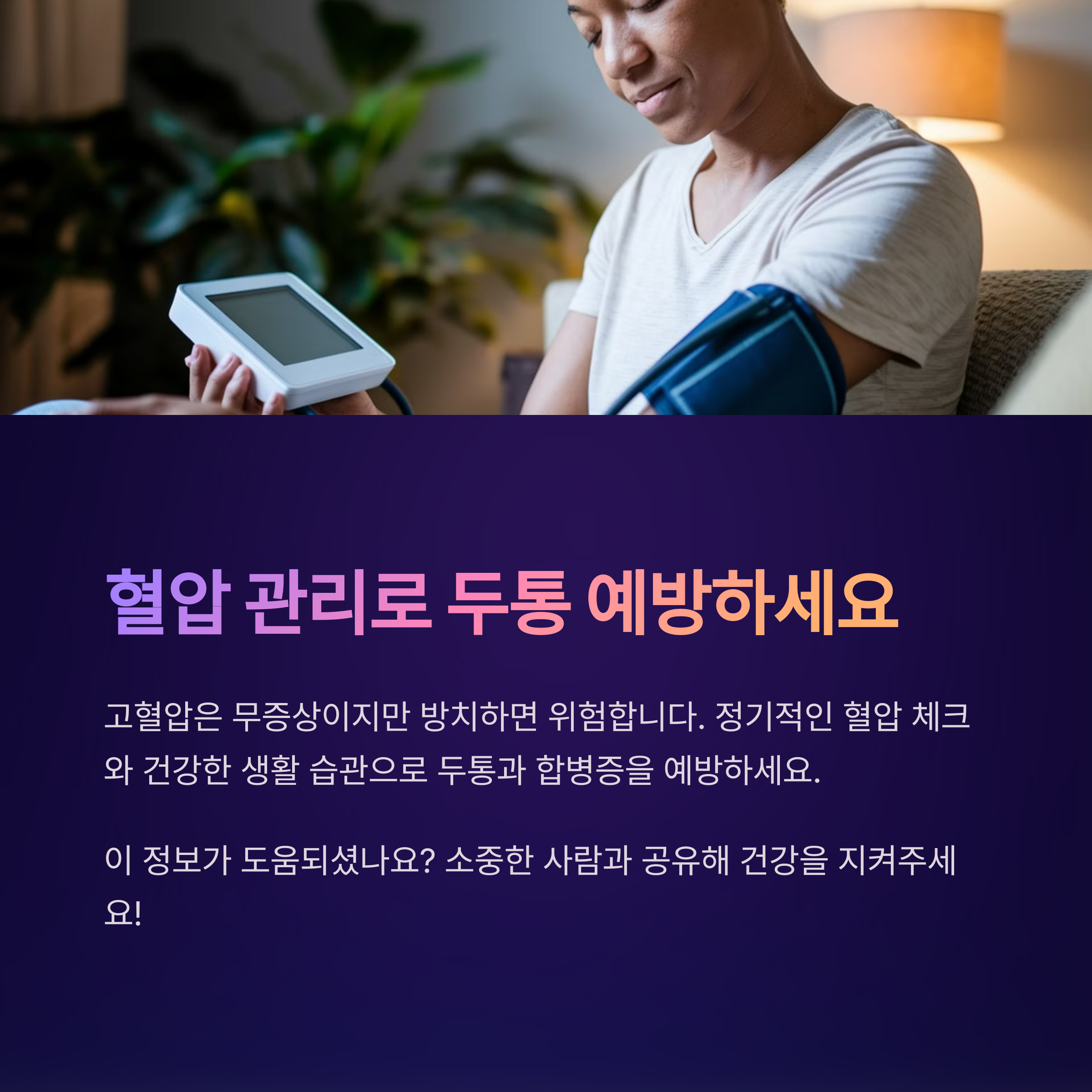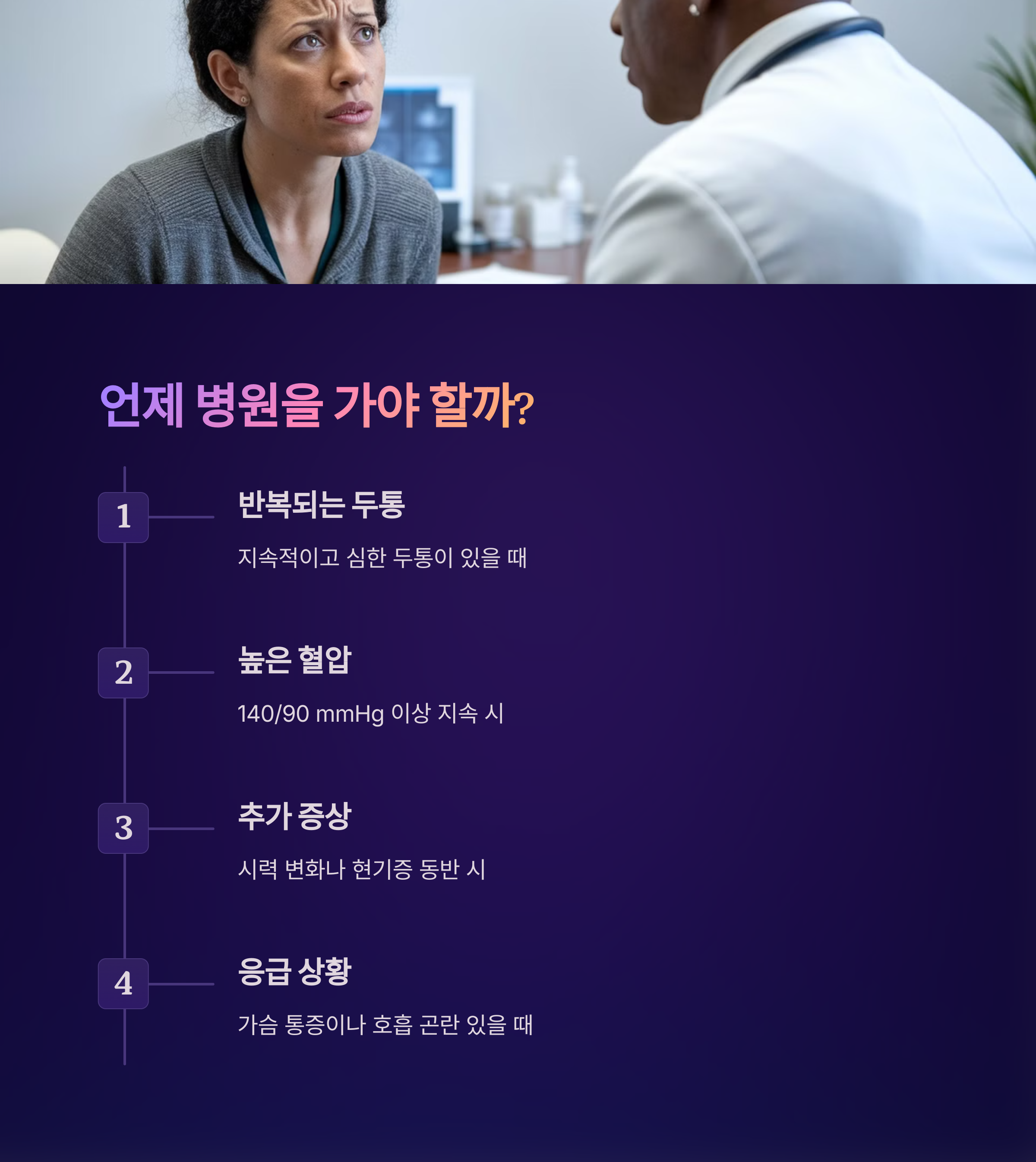 고혈압으로 인한 두통은 단순한 두통과는 달라요. 증상이 심하거나 반복된다면 전문적인 진단이 필요할 수 있어요. 🏥