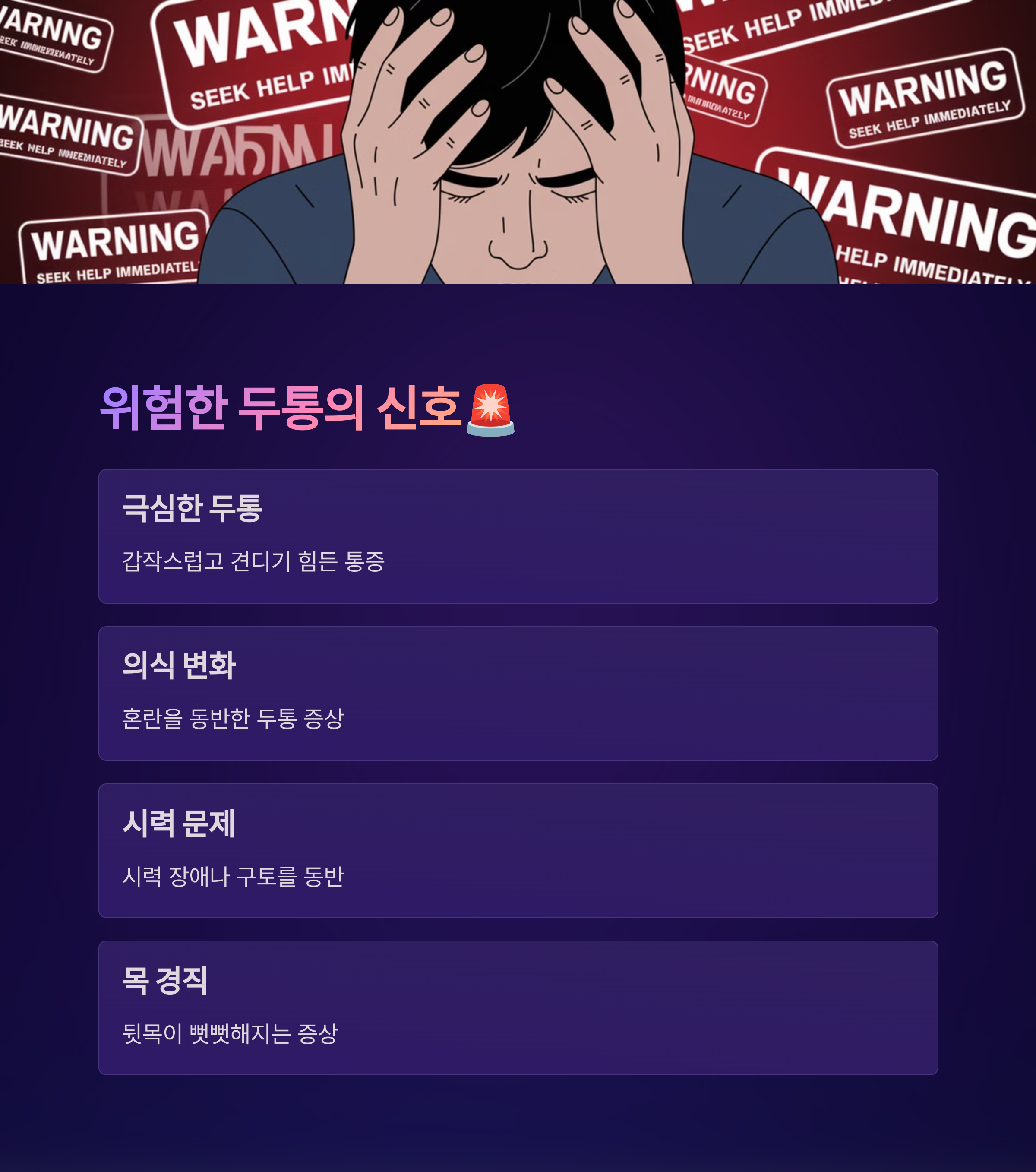 - 🛑 갑자기 심해지는 두통 - 평소와 다른 극심한 통증이 느껴질 때