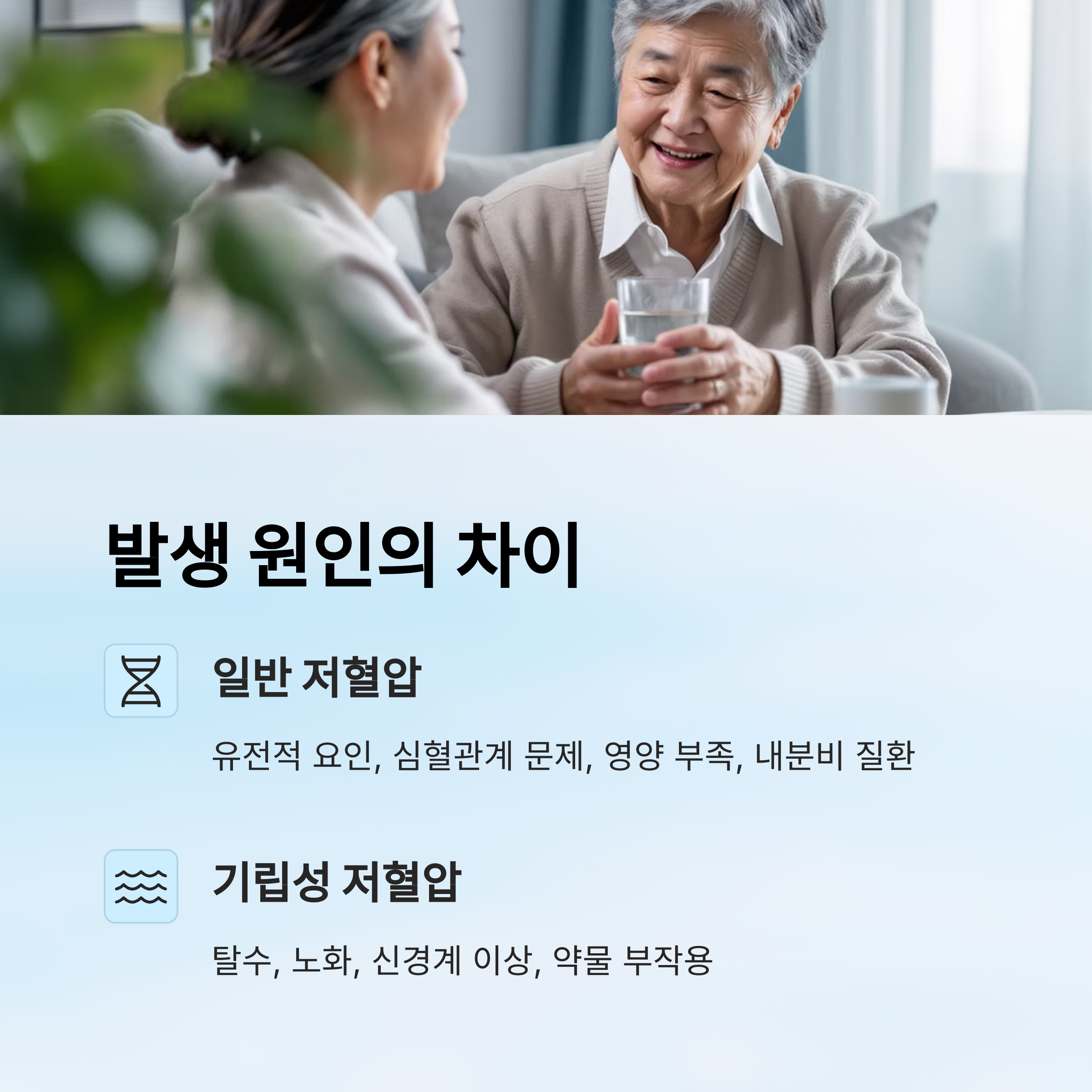 | 구분 | 일반 저혈압 | 기립성 저혈압 |