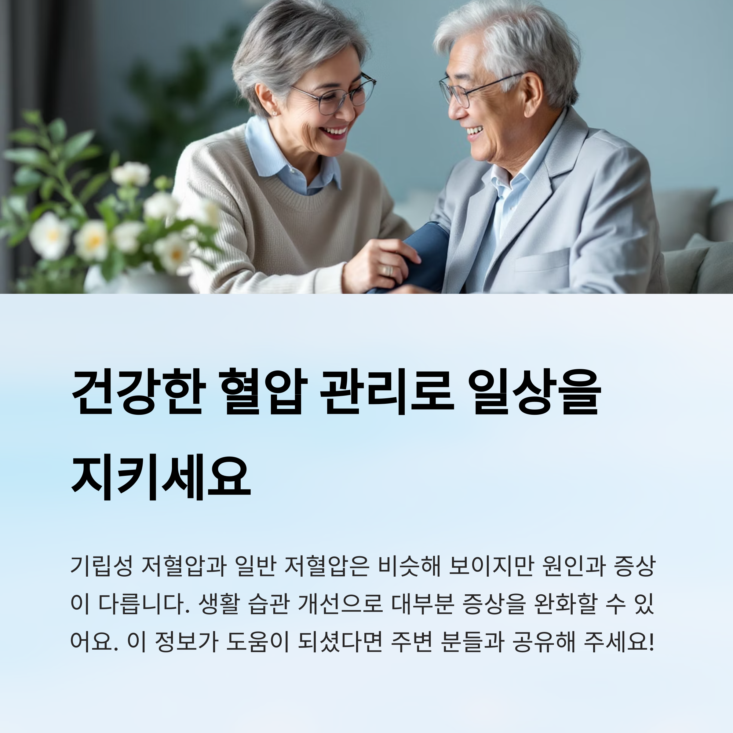 기립성 저혈압과 일반 저혈압은 비슷해 보이지만 발생 원인과 증상이 다르기 때문에 각각의 특징을 잘 이해하고 관리하는 것이 중요해요. 생활 습관을 개선하면 대부분 증상을 완화할 수 있으니, 건강한 습관을 유지해 보세요! 😊