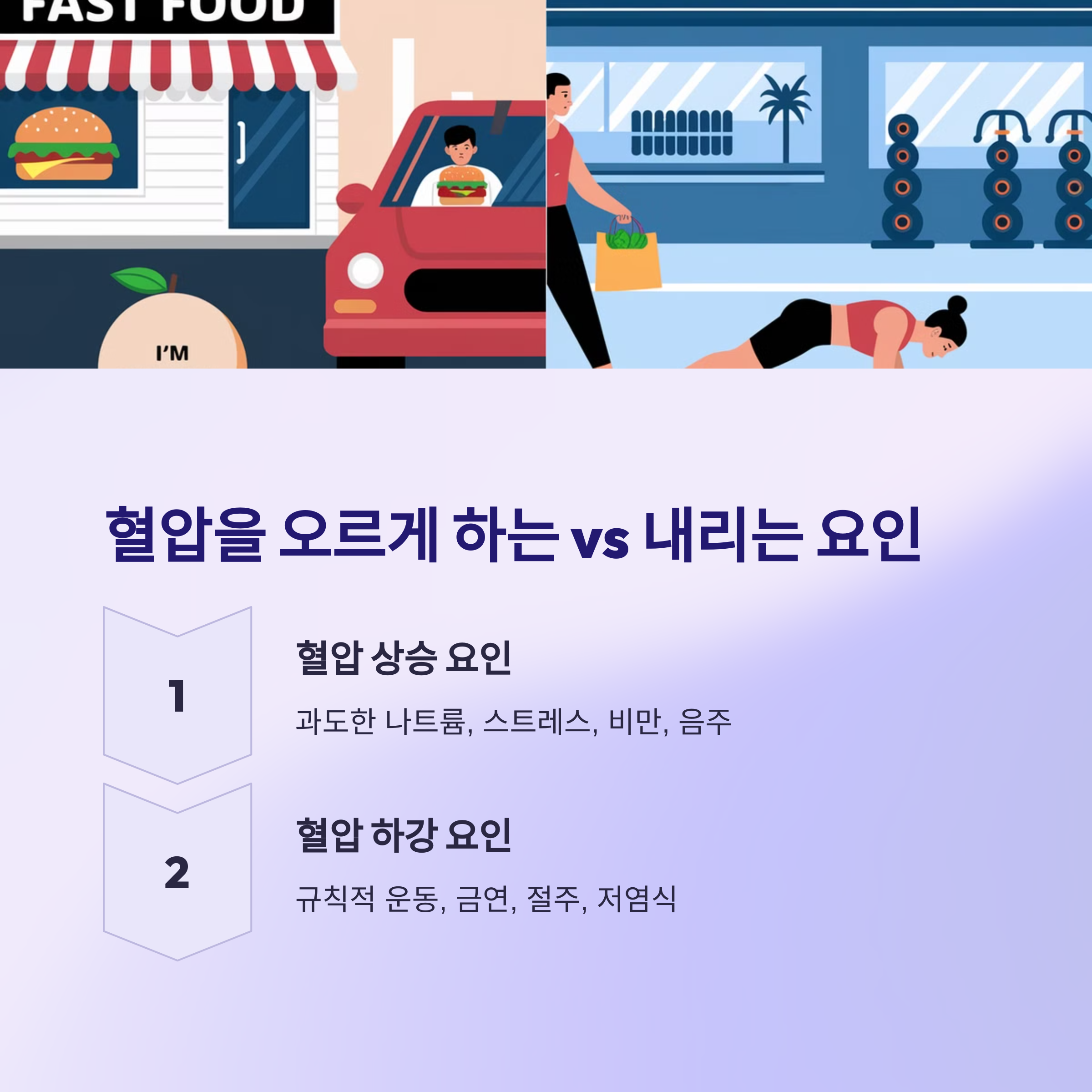 ⚖️ 혈압을 올리는 vs. 낮추는 생활 습관