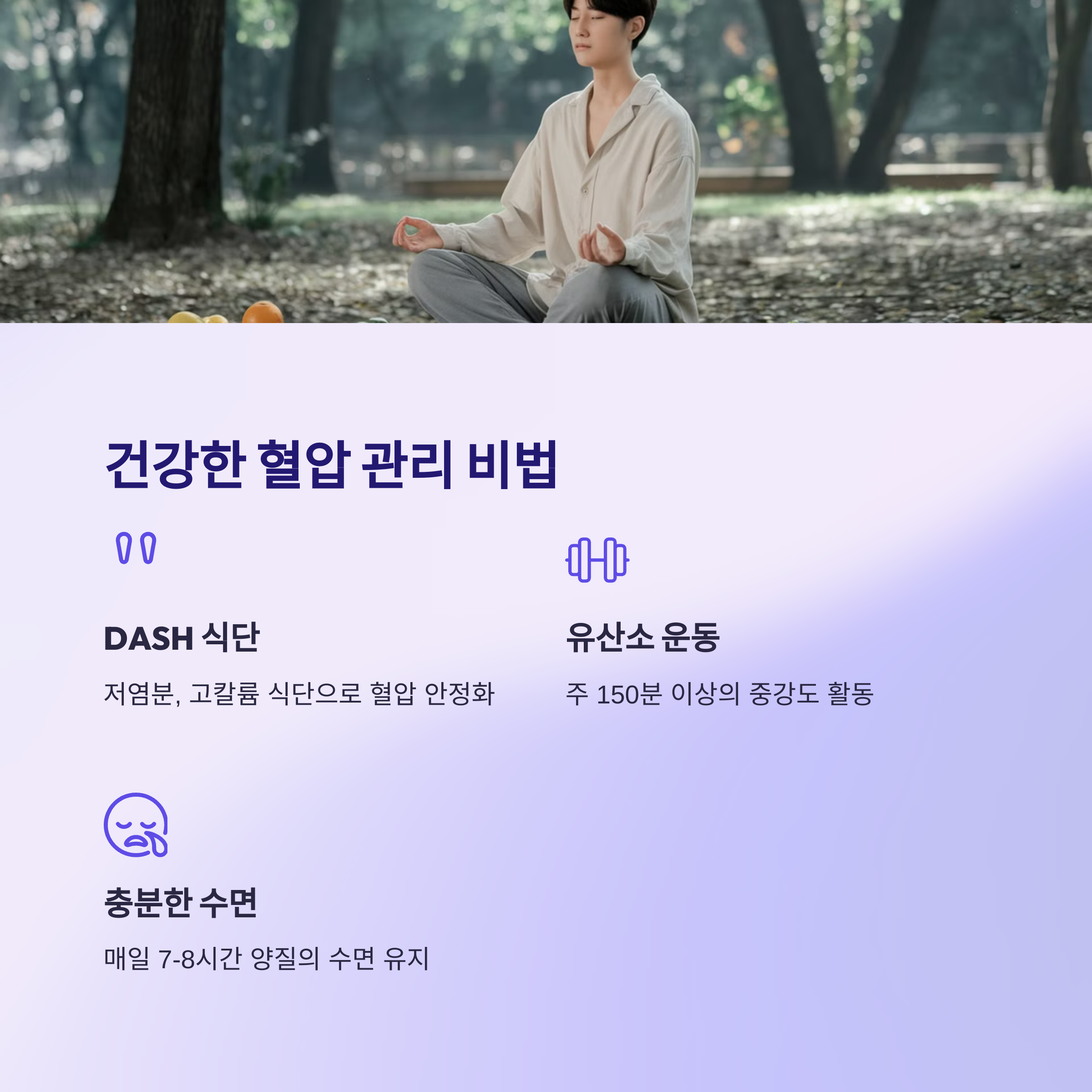 혈압을 건강하게 유지하려면 **짜게 먹지 않고, 꾸준한 운동과 충분한 수면**을 실천하는 것이 중요해요. 💡