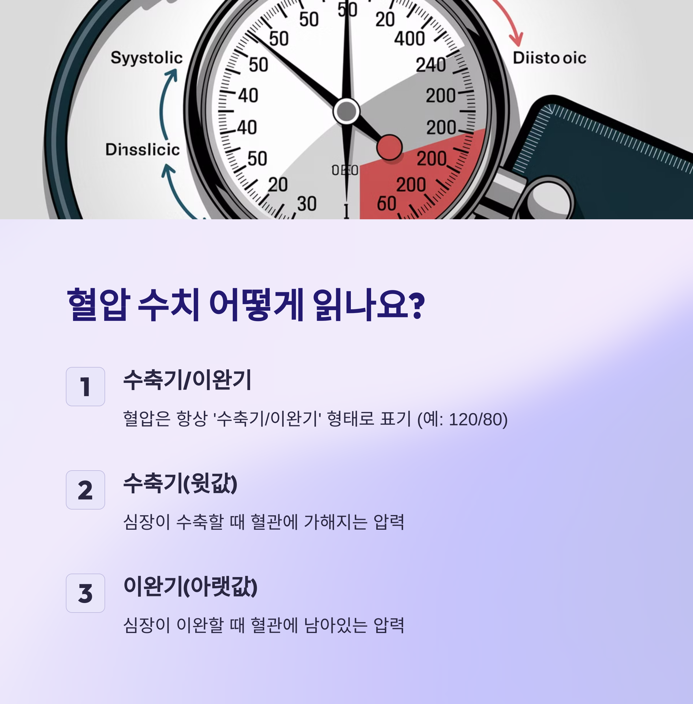 혈압은 **수축기 혈압(최고 혈압)과 확장기 혈압(최저 혈압)**으로 나뉘어요.