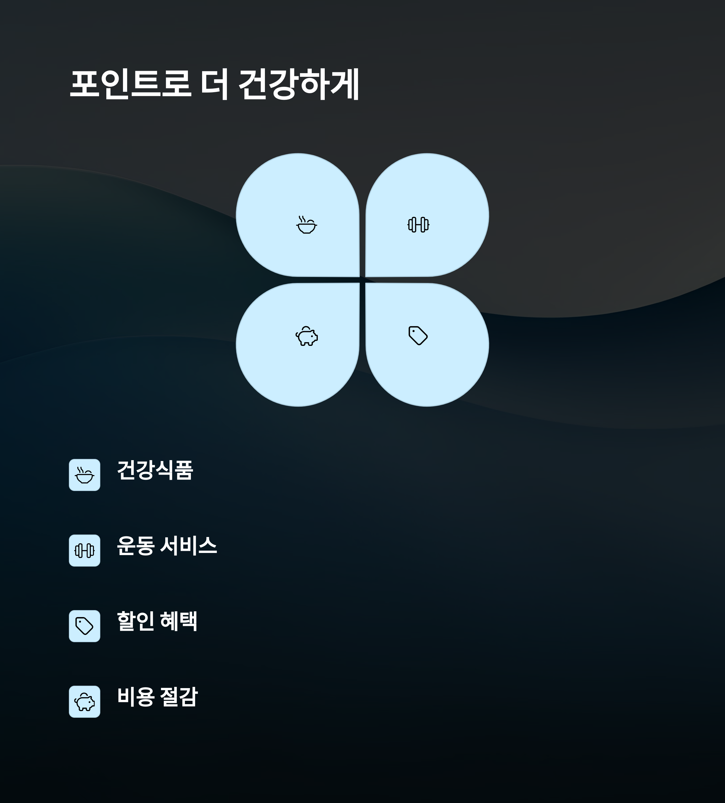 | 걷기 기록 & 포인트 | 연동된 앱 통해 자동 적립 | 건강지원금 대상자 |