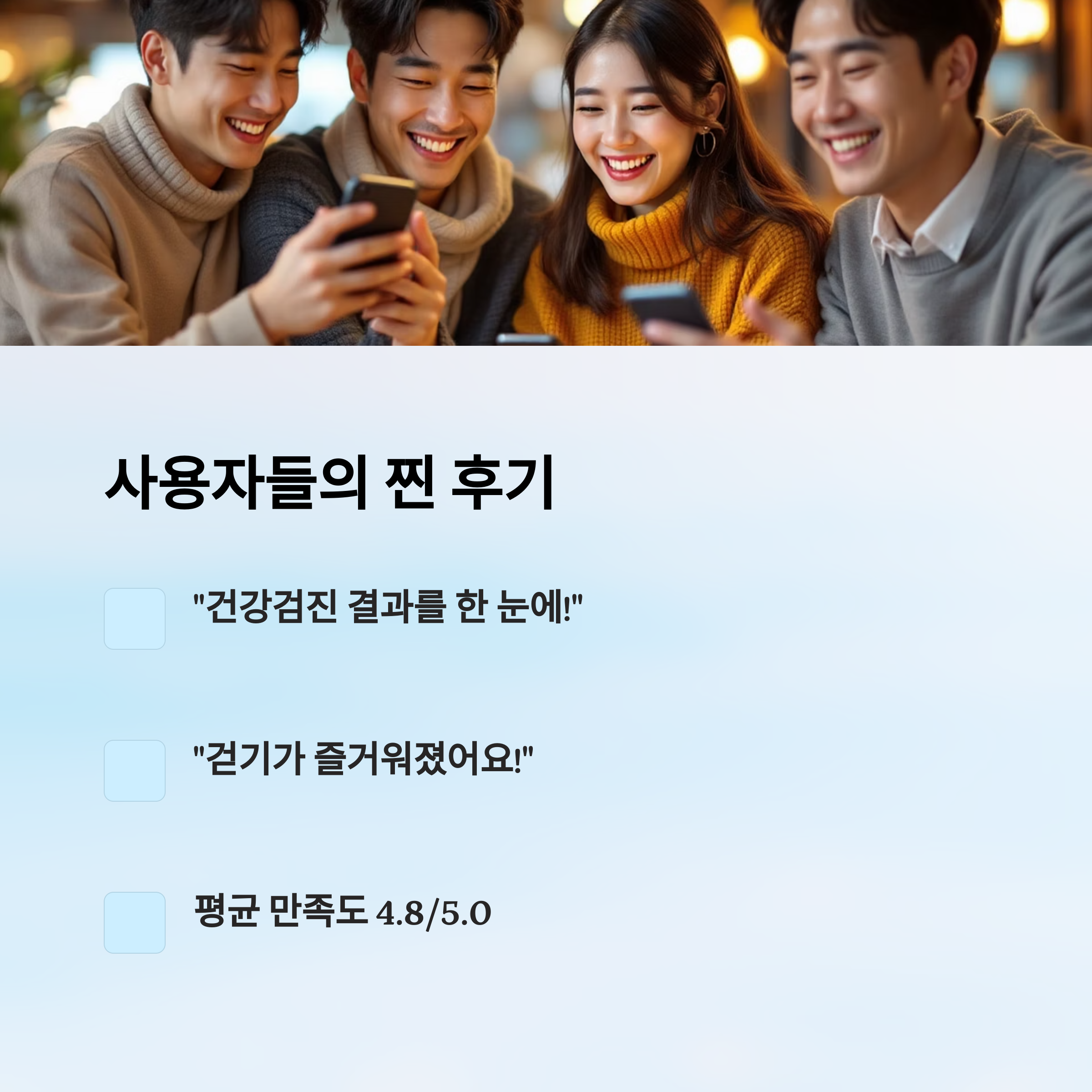 | 40대 주부 | “검진 결과 보려고 병원 갈 필요 없어서 편해요.” |