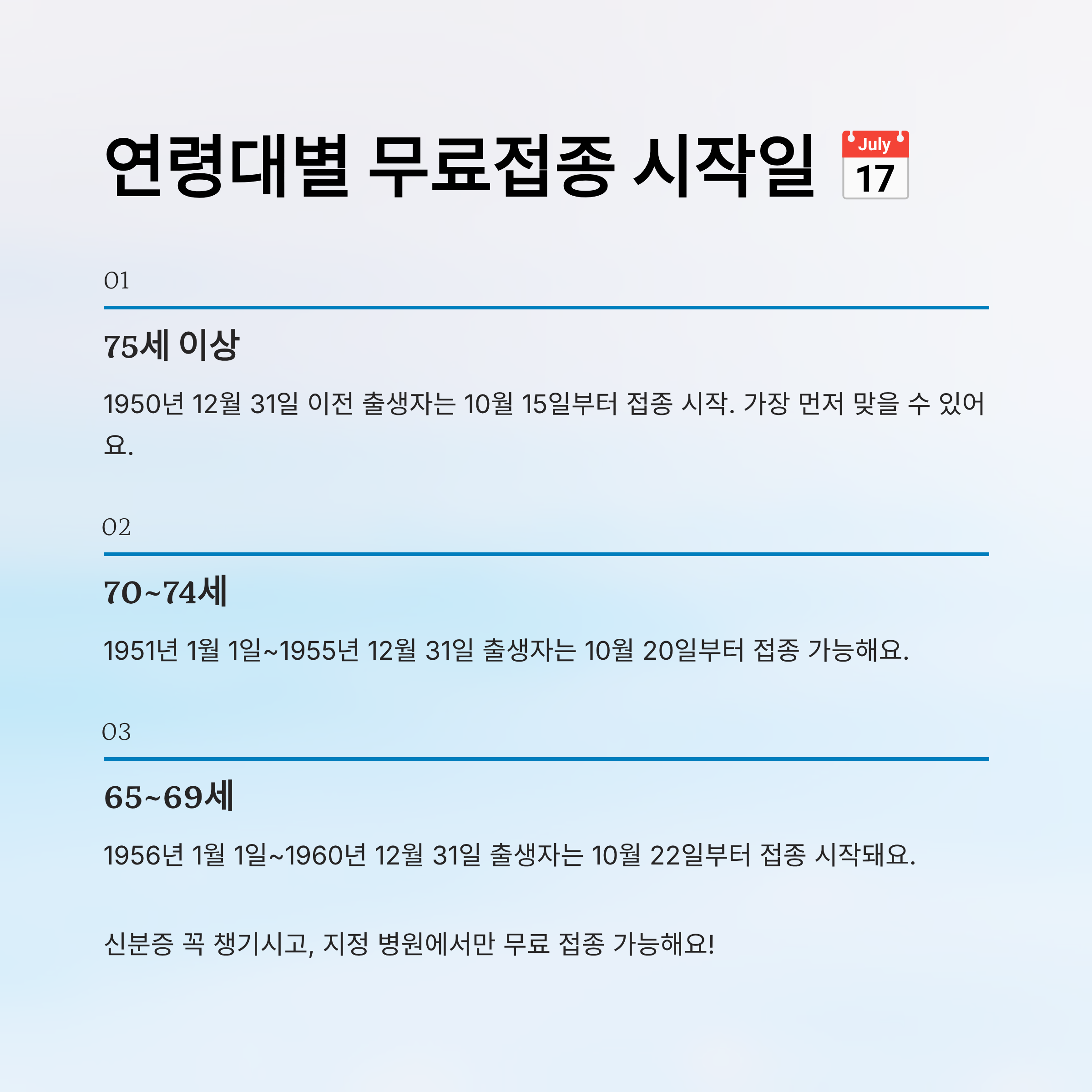 📅 연령대별 무료접종 시작일표