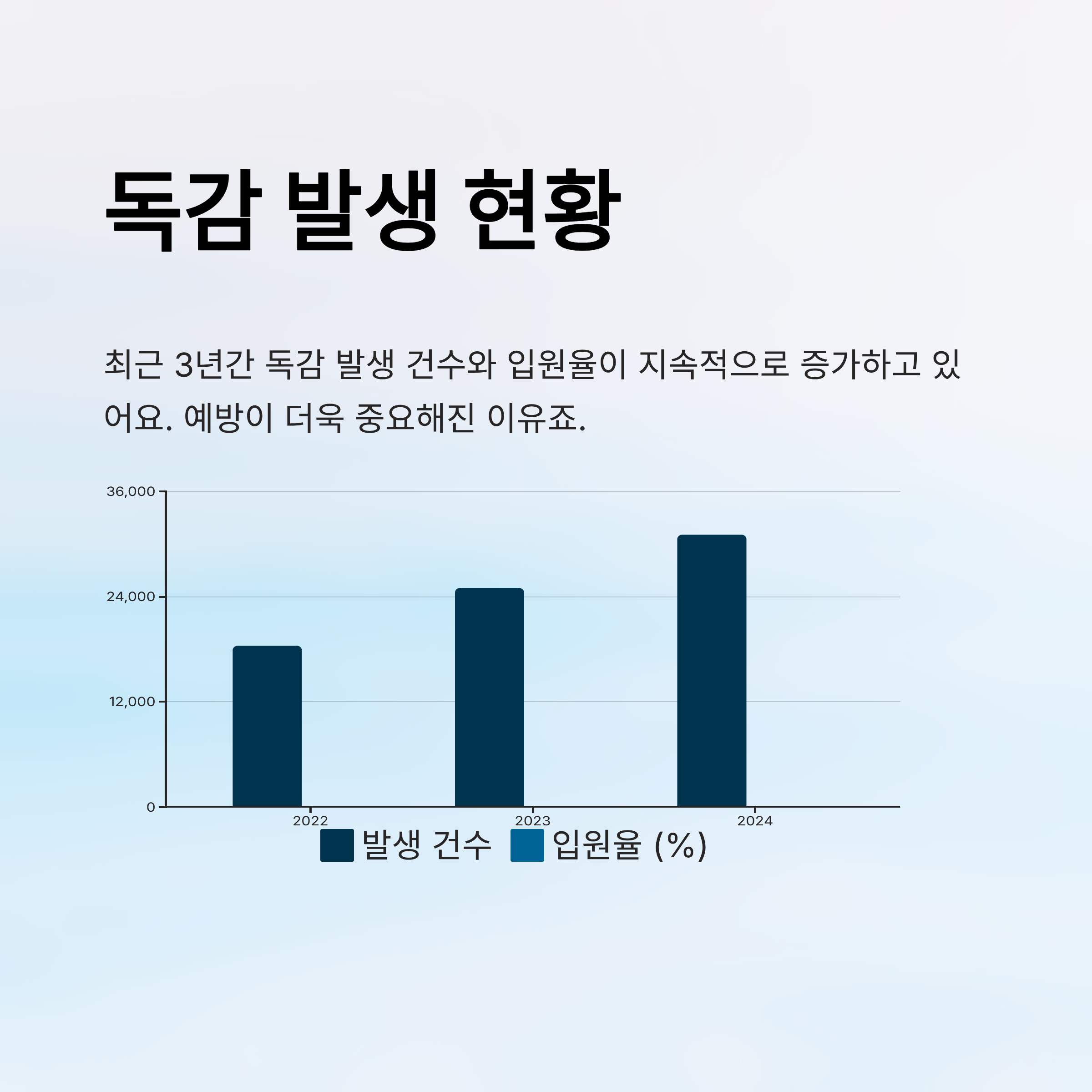 데이터를 보면 매년 독감 발생 수가 늘고 있는 추세예요. 특히 2024년 이후로는 입원율과 사망률도 소폭 상승했기 때문에 더욱 조심해야 해요.