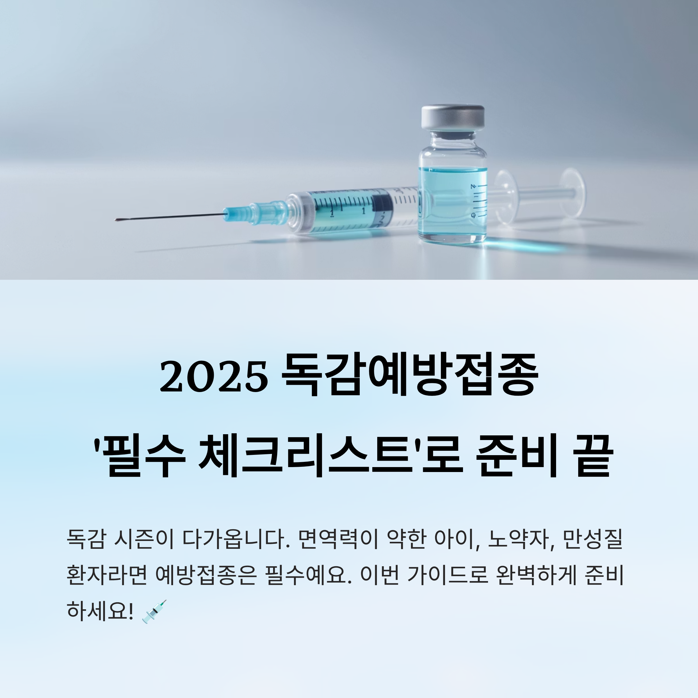 2025년 가을, 독감 시즌이 빠르게 다가오고 있어요! 특히 면역력이 약한 아이, 노약자, 만성 질환자라면 독감 예방접종은 선택이 아닌 필수랍니다. 😷