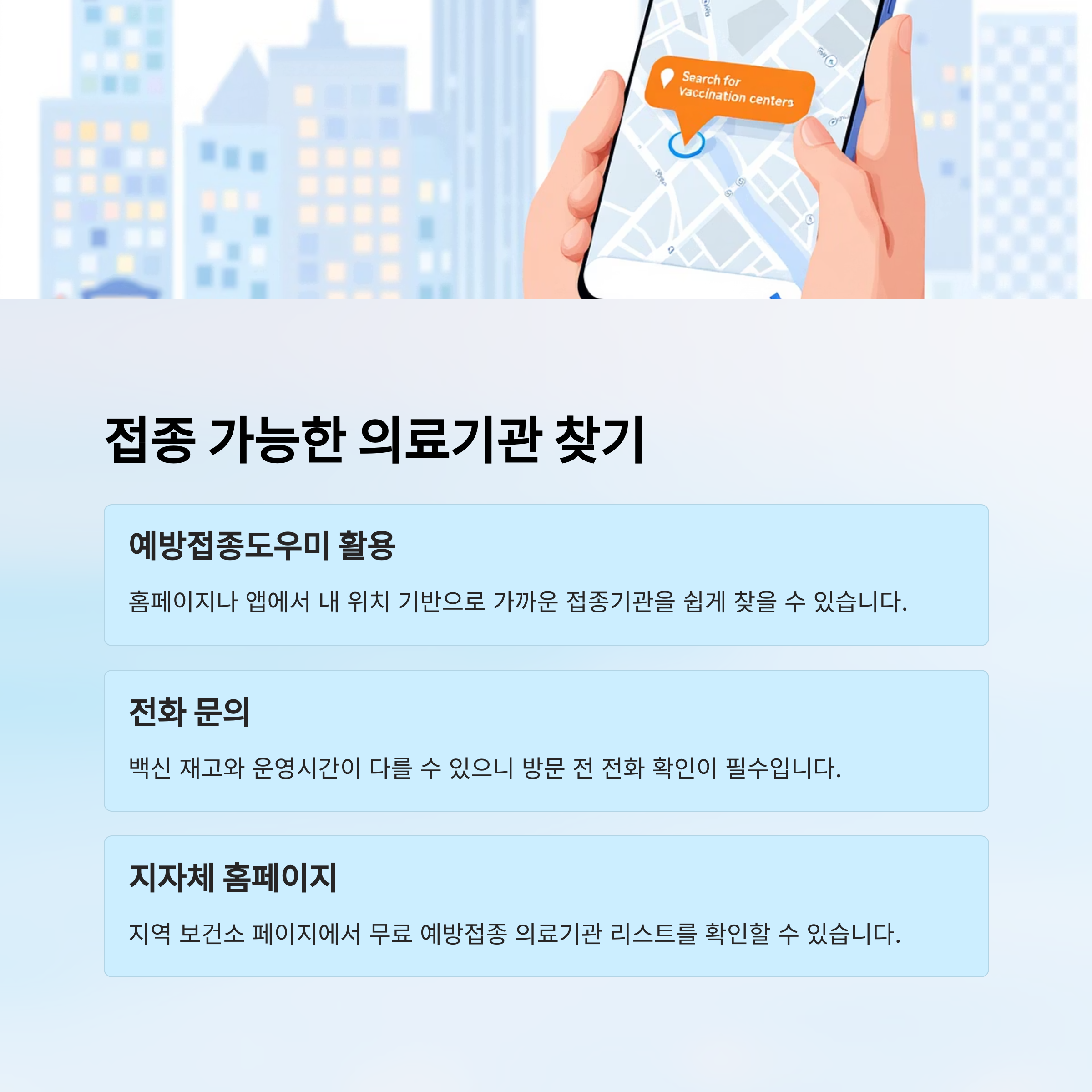 예방접종 기관은 거주지 기준으로 조회하는 것이 가장 좋아요. 특히 아이를 동반하거나 고령층일 경우 가까운 기관을 선택해 이동 시간과 대기 시간을 줄이는 게 중요하답니다. 🧭🚶