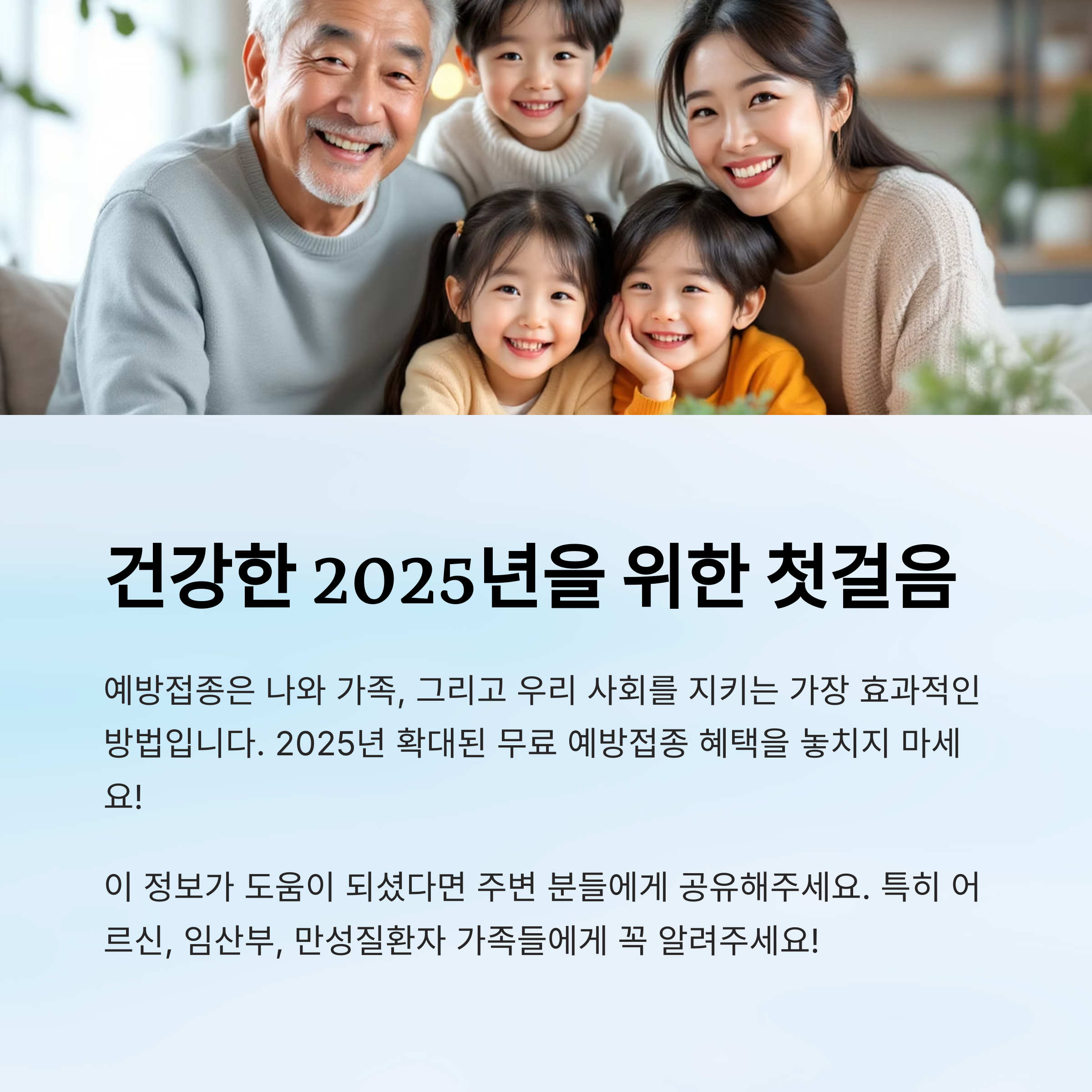 | 2025 | 대상군 대폭 확대 | HPV, 대상포진 등 | 임산부, 청소년, 만성질환자 |