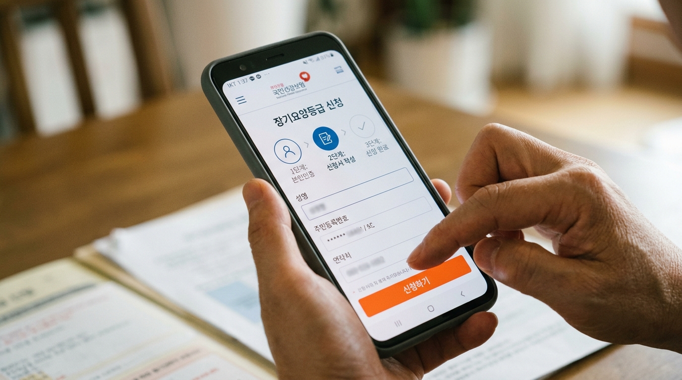 신청 절차는 생각보다 간단하지만, '의사소견서' 제출 타이밍을 놓치면 판정이 지연될 수 있습니다. 우선 국민건강보험공단 지사를 직접 방문하거나 우편, 팩스, 혹은 **'The건강보험' 앱**을 통해 온라인으로 접수할 수 있습니다. 2026년 현재는 모바일 앱 접수가 가장 빠르고 간편해서 추천드립니다.