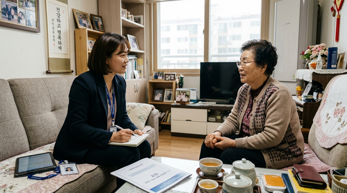 신청서를 내면 며칠 뒤 공단 직원(간호사, 사회복지사 등)이 집으로 방문하여 어르신의 신체 기능을 체크합니다. 이때 어르신들이 갑자기 평소보다 기운을 차리셔서 "나 혼자 다 할 수 있다"라고 말씀하시는 경우가 많은데, 보호자님이 옆에서 실제 어려운 점을 상세히 기록해 두었다가 직원에게 전달하는 것이 매우 중요합니다.