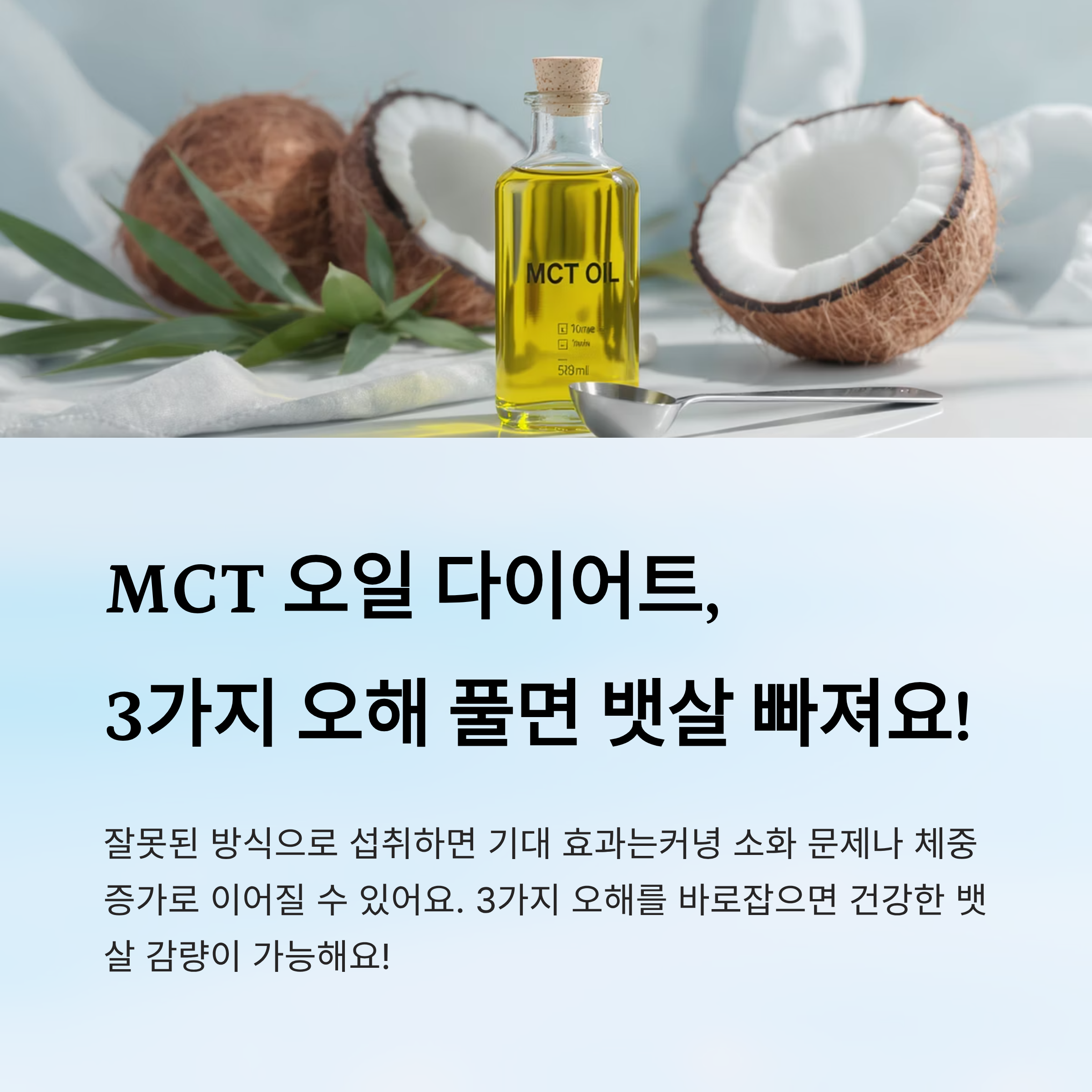 MCT 오일은 '중쇄지방산'으로 불리며 빠른 에너지 전환과 체중 감량 보조 효과 때문에 전 세계적으로 인기를 끌고 있어요. 하지만 잘못된 방식으로 섭취하면 기대했던 효과는커녕 소화 문제나 체중 증가로 이어질 수도 있답니다. 실제로 다이어트를 시도하는 사람들이 자주 저지르는 '3가지 오해'가 있어요.