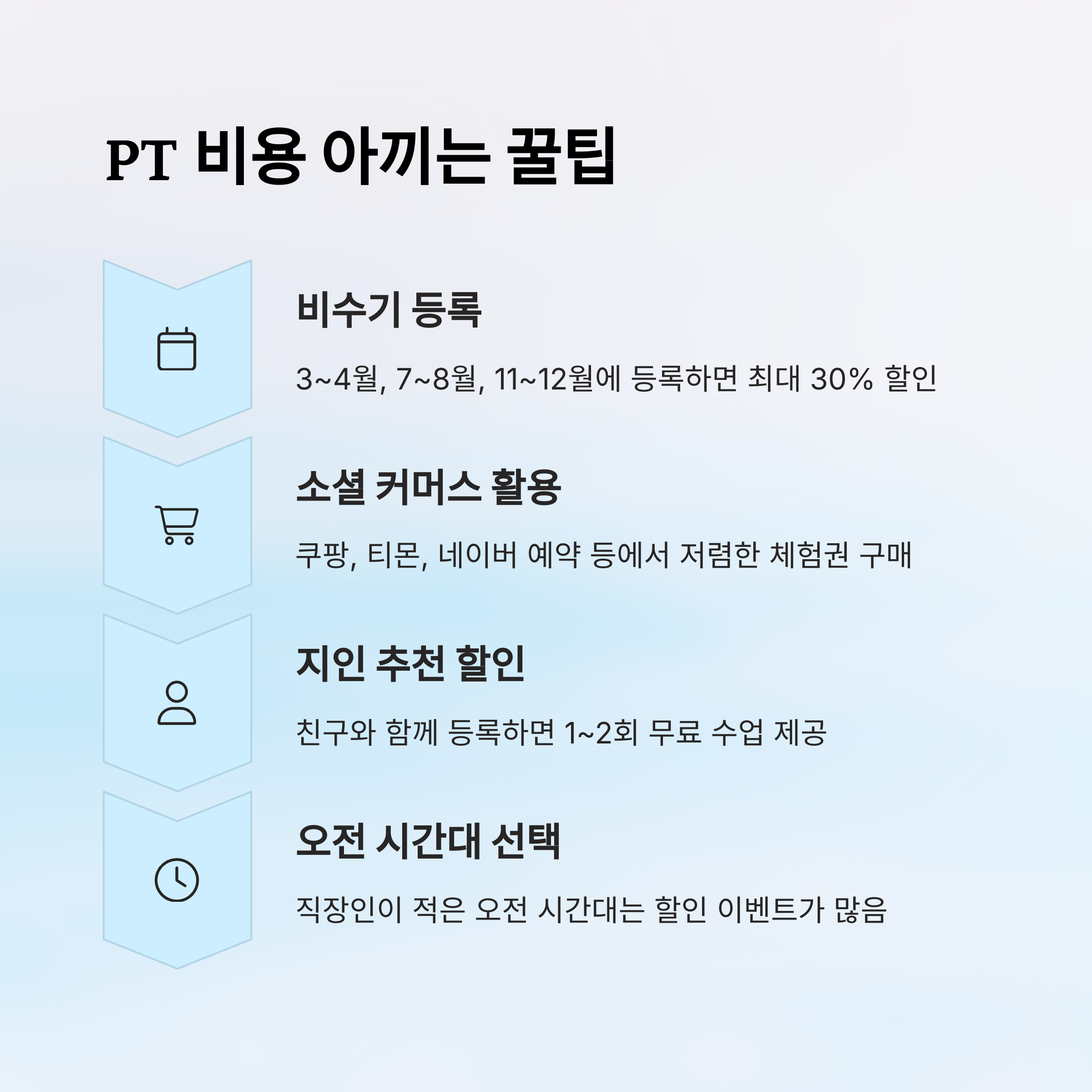퍼스널 트레이닝의 가장 큰 고민은 바로 비용이에요. 아무리 효과가 좋아도, 회당 8만 원 이상 하는 수업을 지속적으로 받기엔 부담이 크죠. 다행히도 PT를 조금 더 저렴하게, 또는 효율적으로 받을 수 있는 다양한 방법들이 있어요. 알고만 있어도 수십만 원을 절약할 수 있답니다 💸